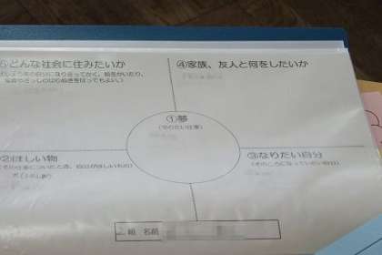 今4年生では、自分の今までを振り返り、そして、将来のことについてドリームマップを作成しています。自分の夢やなりたい自分、住みたい社会、ほしい物などをまとめていく予定です。