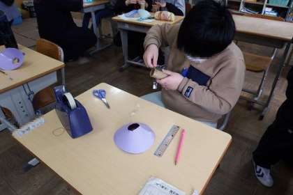 7・8・9・10・11組の図工で「キャッチボールマシーン」の作成を行いました。画用紙とトイレットペーパーの芯を使って、キャッチボールができる道具を作ります。球を上手にキャッチできるかな。