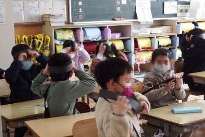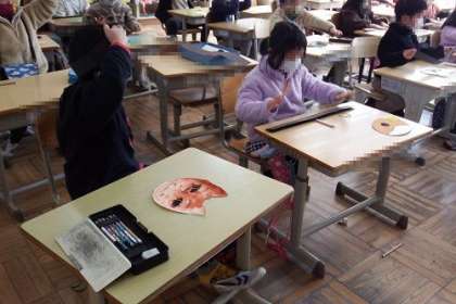 学習発表の配信で使うお面を作りました。このお面を付けて、発表ののぞみます。子どもたちが一生懸命に取り組んでいる姿を、ぜひご覧ください。