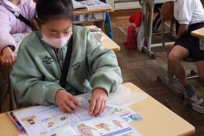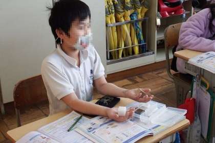 写真は、理科「ものの重さ」の学習の様子です。この日は、「もののしゅるいと重さ」で、「同じ体積でも、もののしゅるいがちがうと、重さはちがうのか」実験で確かめました。手で持って比べてみると・・・。