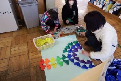 学校全体に6年生の卒業に向けての準備を進めています。写真は、4年生が作成している掲示物です。あっという間に、もう1か月をきりました。