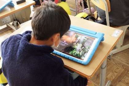 国語「子どもをまもるどうぶつたち」の発展学習を行いました。他の動物たちの知恵について、タブレットを使って調べました。オラウータンやライオンなど、いろんな動物についてまとめることができました。