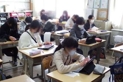 国語で「偉人に学ぶ」の学習に取り組んでいます。子どもたちが調べているのは渋沢栄一やアインシュタインなど、日本の人から外国の偉人まで、多岐にわたります。タブレットを使って、調べ学習が進んでいます。