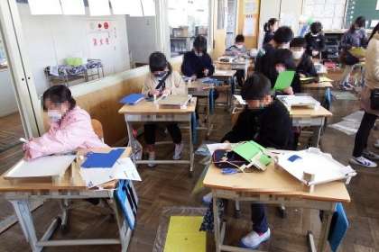 図工「めいろ作り」で、土台が完成しました。この日は、土台の上の迷路づくりに移りました。いろんな工夫をこらして、自分だけの迷路づくりを目指します。