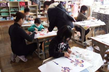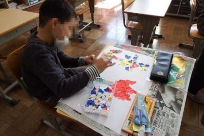 図工の学習で「ちぎりえ」にチャレンジしました。色紙をちぎり、台紙にのりをつけ貼り付けていきます。水彩とはまた違った味のある絵ができあがります。