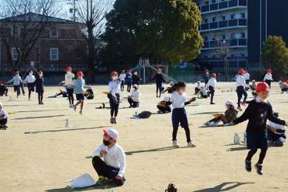 写真は、3年生のなわとび大会の様子です。自分の記録への挑戦を続けました。時間いっぱい跳び続けた子にも、大きな拍手が沸き起こっていました。