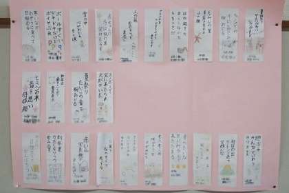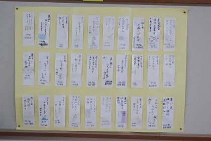 国語「心が動いたことを十七音で表そう」の学習で作った俳句が、学年掲示板に掲示してあります。6年間の最後に思いを込めて作った俳句です。