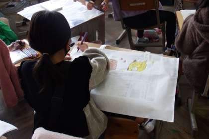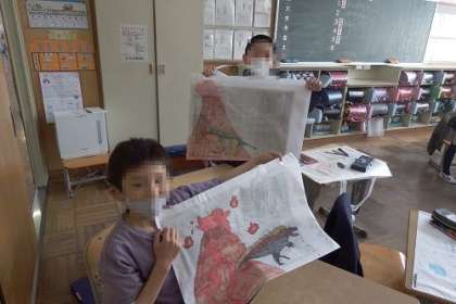 今日は、楽しい作品バックを作りました。恐竜を描いたり、大好きな動物を描いたり・・・。大きなバックいっぱいに自分の絵を思い切り描きました。