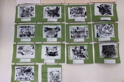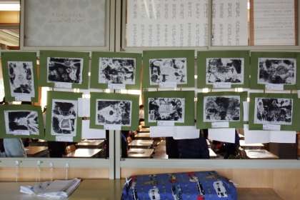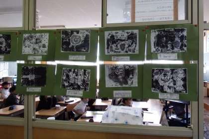 図工で作成した版画が教室に掲示してあります。一部を紹介します。子どもたちの思いが溢れる素敵な作品ばかりです。