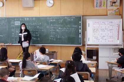 2年生でも算数で「わくわく算数ひろば」の学習に取り組みました。この日は、お楽しみ会で手品を行っている場面の問題を解きました。何番目かを答えるために、図をかいて考えました。