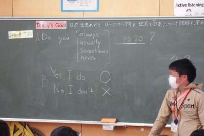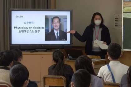 この日の外国語科の課題は、「日本生まれのヒーローについて考え、世界と日本について理解を深めよう」です。ヒーローには、ノーベル賞を受賞した山中伸弥教授も登場していました。