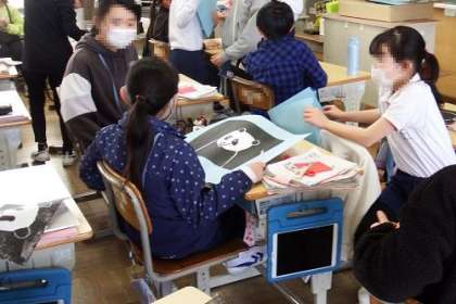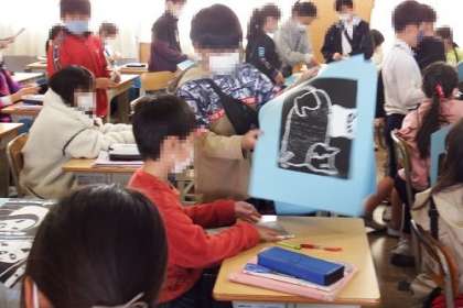 4年生が図工で作成した版画です。完成した作品は来週には持ち帰ります。ぜひ、みんなに見てもらってくださいね。