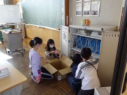 今日は、全学年一斉にタブレットの移動を行いました。丁寧に扱いながら保管庫にしまいこみます。来年度は、また、たくさん使って学習しましょう。