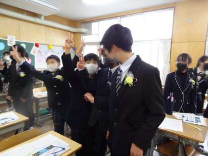 3月18日、令和3年度の卒業証書授与式を挙行しました。卒業生132名が胸をはって旅立っていきます。写真は、朝の教室の様子です。