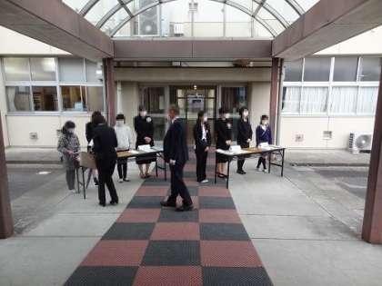 3月18日、令和3年度の卒業証書授与式を挙行しました。卒業生132名が胸をはって旅立っていきます。写真は、受付や入場の様子です。
