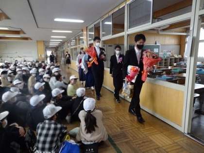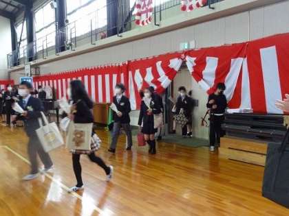 3月18日、令和3年度の卒業証書授与式を挙行しました。卒業生132名が胸をはって旅立っていきます。写真は、門出送りや会場の準備・片付けを行ってくれた5年生の様子です。