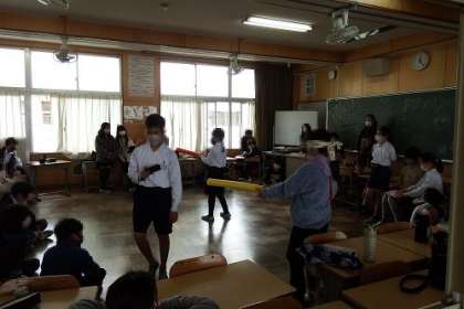 5年生のお別れ会・お楽しみ会の様子です。自分たちで企画した会を最後まで楽しみます。学級のカラーが出ていて、どのクラスも面白いです。