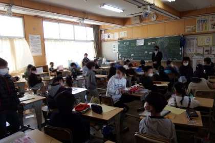 最後の一日。各学級では、お楽しみ会を行ったり、教室をきれいにして荷物を移動したり、通知表をもらったり。一年間過ごした教室、一緒に学んだ友達ともお別れです。写真は、3年生の様子です。