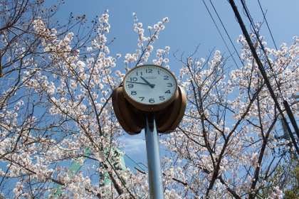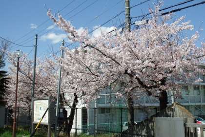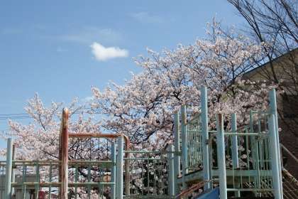美山小学校の校内には、たくさんの桜の木があります。今、あちこちできれいな花を咲かせ、子どもたちを待っています。さて、どこの桜の木か分かるでしょうか。