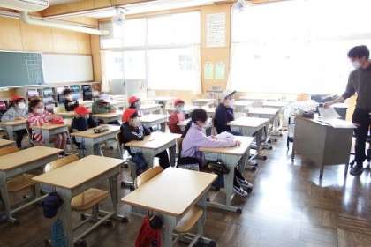 本年度初めての通学団会を行いました。新1年生も入り、新しいメンバーでの通学団会です。集合時間や出発時間、集合場所、並び方などを再確認しました。後半は、運動場の下校場所を全校で確認しました。一年間交通事故がなく、安全に登下校したいと思います。