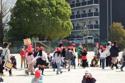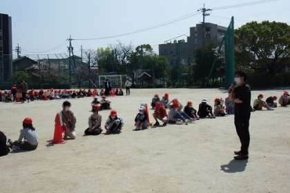 本年度初めての通学団会を行いました。新1年生も入り、新しいメンバーでの通学団会です。集合時間や出発時間、集合場所、並び方などを再確認しました。後半は、運動場の下校場所を全校で確認しました。一年間交通事故がなく、安全に登下校したいと思います。
