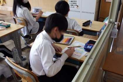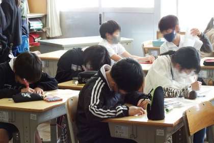 新しいクラスとなり、新しい友達が増え、まずは、自己紹介。教室掲示にもする自己紹介カードを作成しています。得意なことや好きなことなど熱心に書き込んでいました。