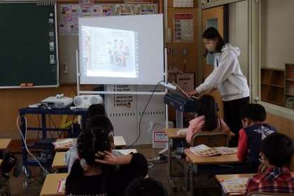 世界の遊び歌を音楽で学習しました。曲は、「小犬のビンゴ」ト「ロンドンばし」です。曲のリズムに合わせて手拍子をしたり、体を動かしたり・・・。聞いたことのある子も多く、とても楽しそうでした。