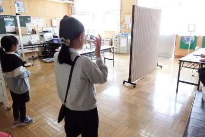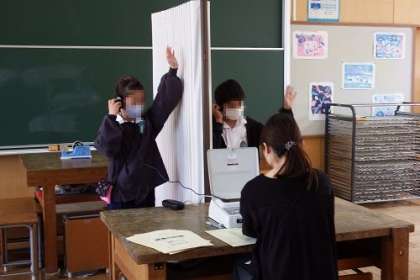 視力聴力測定が始まりました。写真は、視力は保健室、聴力は図工室で測定します。5年生の様子です。