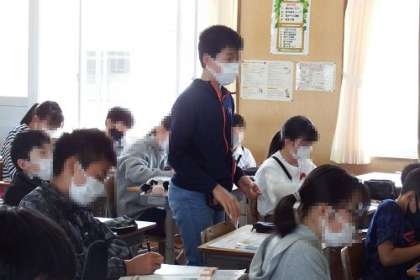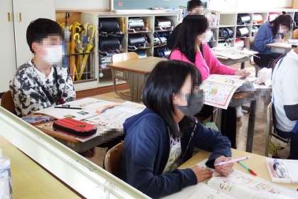 この日の家庭科の学習の課題は「朝食から健康な一日の生活を考えよう」です。朝食の例から、よい点や課題点をみんなで話し合いました。自分の朝食は、どうだったかな。