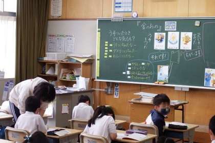 イソップ物語「金のおの」を使って道徳の授業を行いました。物語は、木を切っていたきこりが、手をすべらせて池におのを落としてしまうことから始まります。お話をご存知の方も多いことでしょう。正直、誠実について考えることが本時のねらいです。