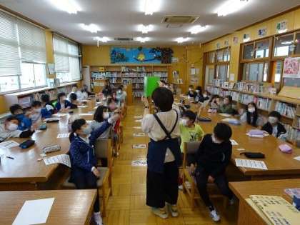 「図書館の本を早くかりたいな」この日は、図書館の利用の仕方の学習です。図書館司書の先生からの説明をしっかりと聞きました。今年一年、たくさんの本を読んでくださいね。