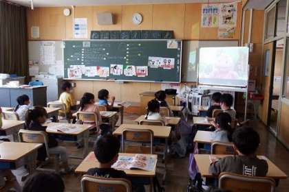 はじめての道徳「たのしいがっこう」を学習しました。入学式の様子や教室での学習の様子、休み時間の様子の挿絵から、楽しい学校の様子を想像します。子どもたちからも、「たのしそう」という意見がいっぱい出されました。