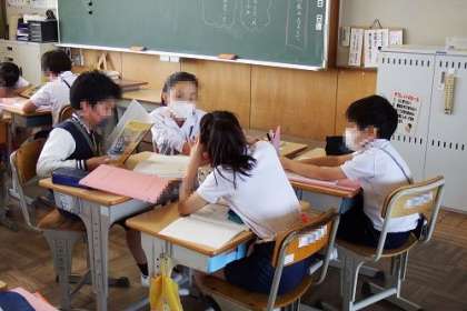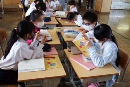 国語「だいじょうぶ だいじょうぶ」の学習で進んできました。この日は、グループで音読の発表会です。読み手はどんな工夫をしたら伝わるのか、聞き手はどういう聞き方をしたらよいのか、考えました。