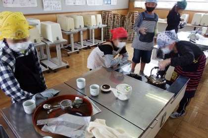 家庭科で「お湯をわかしおいしいお茶を入れよう」に取り組みました。今年から始まった家庭科の時間。家でお茶を入れている子も入れていない子も、先生の説明をよく聞きながら楽しんで学習に参加していました。