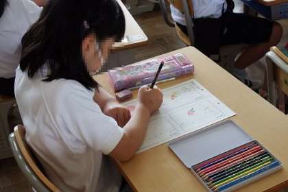 生まれてはじめて?の「めいしづくり」に挑戦しました。自分の名前を丁寧に書き込んで、上手に色付けした絵も加えます。素敵なめいしが完成しました。