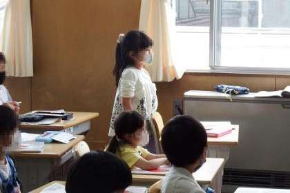 国語「あめですよ」の学習に取り組みました。カエルやミミズ、ねずみ、ネコ、かば、ワニなどいろんな生き物が登場します。お話の流れを読み取ります。
