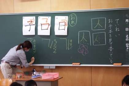 書写の学習を行いました。この日は、漢字の「おれ」に気をつけることを学びました。まっすぐ書く場合、少しななめに書く場合、折れ曲がって書く場合。よく見て、書いてみましょう。