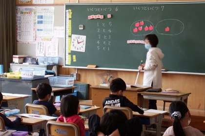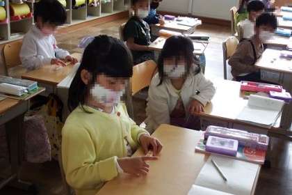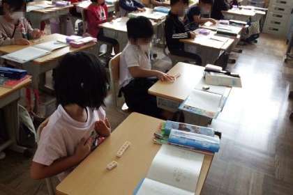 算数「いくつと いくつ」の学習に入りました。この日は、6を2つに分ける方法に取り組んでいました。子どもたちは数図ブロックを使いながら、5通りの分け方を学んでいました。