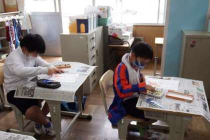 子どもたちが考える世界に一つだけのたまご。「ひみつのたまご」の学習で、楽しい卵がいっぱいできあがりました。見たこともないカラフルなたまごの完成です。