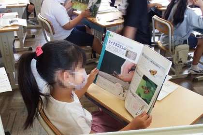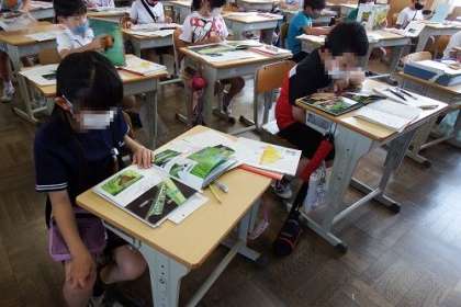 国語「自然のかくし絵」の学習を行ってます。自分の選んだ本を使って、自然のかくし絵を伝えます。