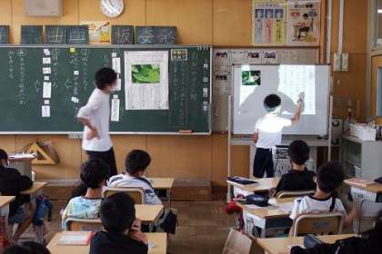 国語「自然のかくし絵」の学習に取り組んでいます。写真は、本の中の大事な言葉を選んで文章をまとめる方法について学習している様子です。