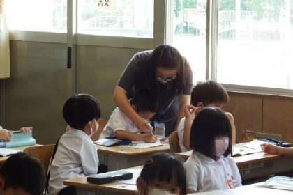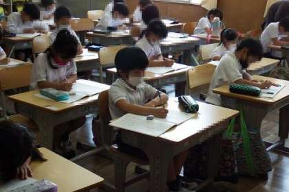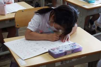 写真は、書写の学習の様子です。この日は、「せっけん」「まっすぐ」という文字を、一文字ずつ丁寧に書きました。姿勢や鉛筆の持ち方など基本に注意しながら・・・。
