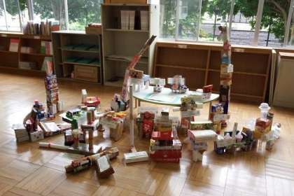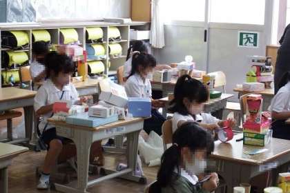 図工「はこでつくったよ」の取組が各教室で進んでいます。みんな力作ぞろいです。広場に展示してあるので、学校公開の折にはぜひ見ていってください。