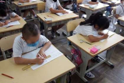 算数「たし算とひき算のひっ算」の学習を行っています。この日は、2けた+2けたの筆算を行いました。ものさしを使って、筆算を書く練習もしました。