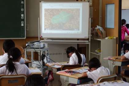 理科「植物の育ち方」で、オクラ・ヒマワリの観察記録をとりました。この日は、子葉の観察です。ホウセンカの子葉とどこが違うのか考えていきます。