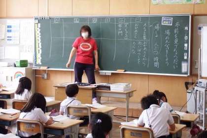 国語「名前を見てちょうだい」の学習に入りました。これは、主人公のえっちゃんとあかあさんにもらったぼうしにまつわるお話です。これから読みを深めていきます。この日は、登場人物などに気をけて場面分けをしました。