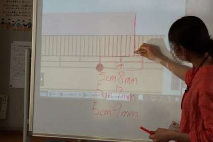 算数「長さ」の学習も学びのまとめに入ります。センチとミリの変換をしたり、ものさしの目盛りの読み方を確認したり、決められた長さの直線をひいたりしました。