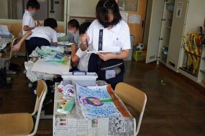図工で「まぼろしの花」の作成が始まりました。絵のぐを使った様々な技法を学んだ子どもたち。その技法を使って、どんな花を描くことができるか、今まで見たこともない花がたくさん描かれることでしょう。