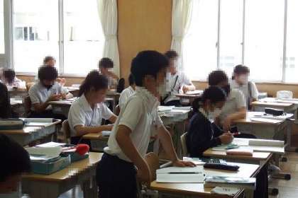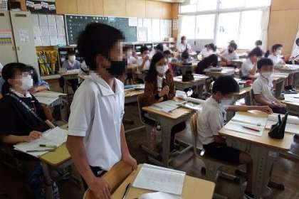算数「分数×分数」の学習です。この日は、分数と小数のかけ算のやり方を学習しました。小数は、分数に直してから計算します。計算もどんどん複雑になってきました。