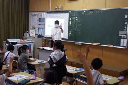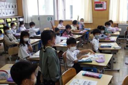 写真は、算数「たしざん」の学習の様子です。これまで、「あわせていくつ」「ぜんぶでいくつ」を学習してきましたが、この日は、「ふえるといくつ」を学習しました。